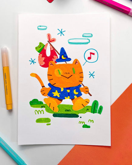 Here you can find a selection of illustrations created in collaboration with Carioca Italia, using their vibrant art supplies. Since Winter 2024, I’ve been partnering with Carioca to produce playful and colorful illustrations aimed at engaging young audiences.